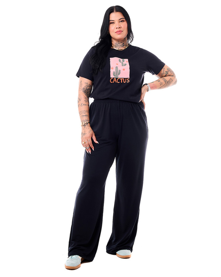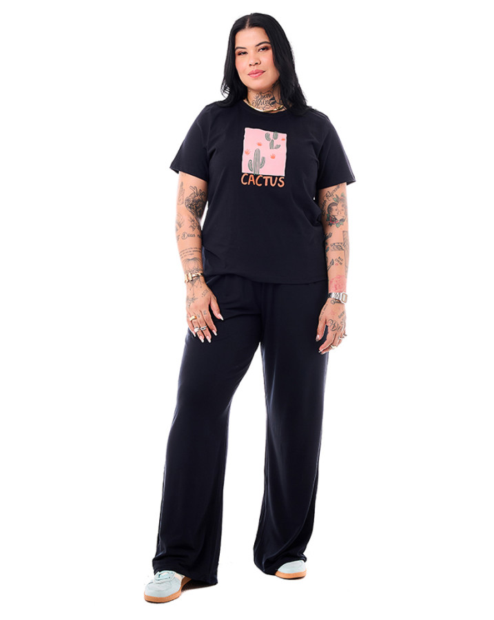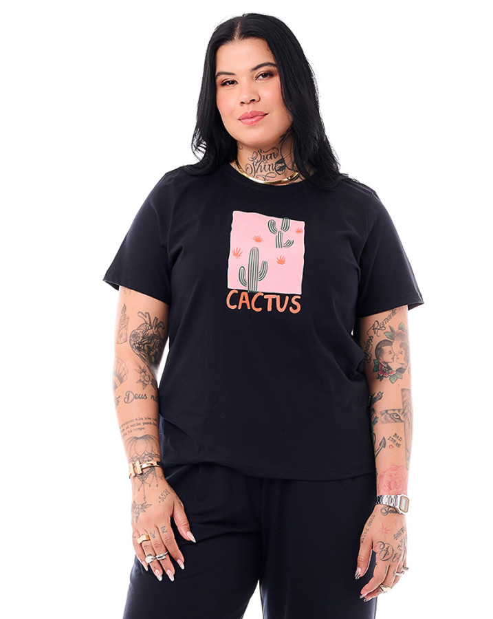 Camiseta Feminina Cactus Preto Knulu