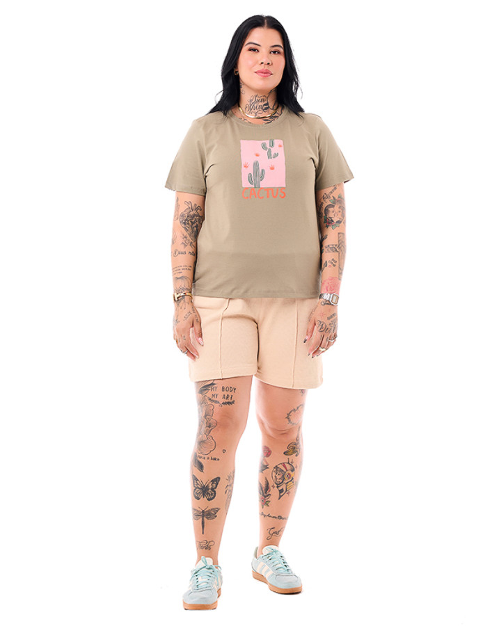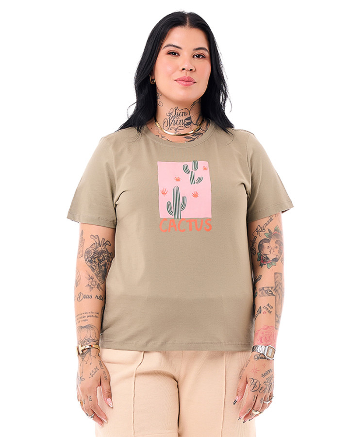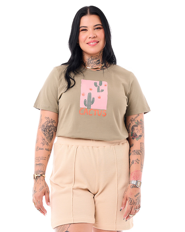 Camiseta Feminina Cactus Verde Oliva Knulu