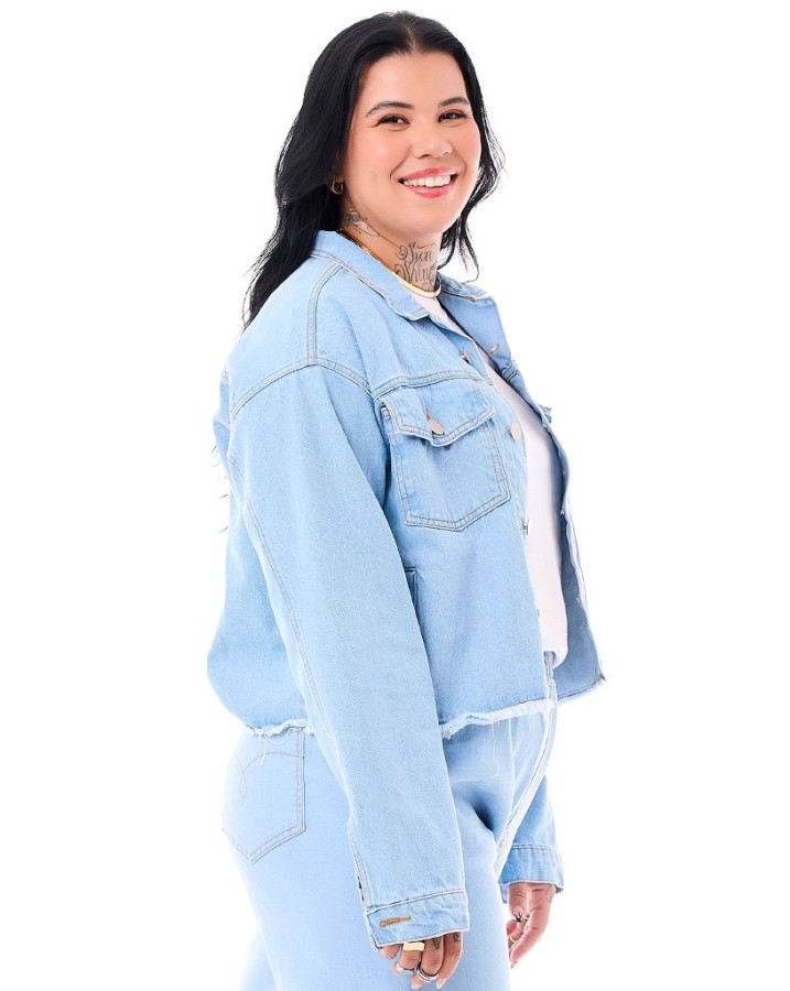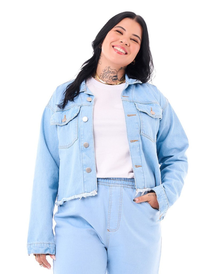 Com visual despojado e tonalidade clara, a Jaqueta Jeans Feminina Frontier Storm Azul Claro Knulu traz um design urbano e moderno, com acabamento em barra desfiada e botões metálicos que reforçam o estilo casual. O modelo possui modelagem ampla com caimento reto, bolsos frontais funcionais e gola clássica, criando uma proposta prática e versátil para o dia a dia. Confeccionada em jeans 100% algodão, oferece estrutura firme sem perder o conforto, além de toque agradável ao vestir. A textura natural do tecido garante respirabilidade e mobilidade, ideal para compor sobreposições leves em diferentes estações.