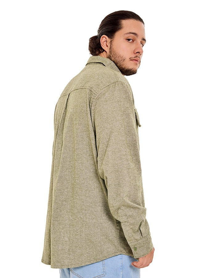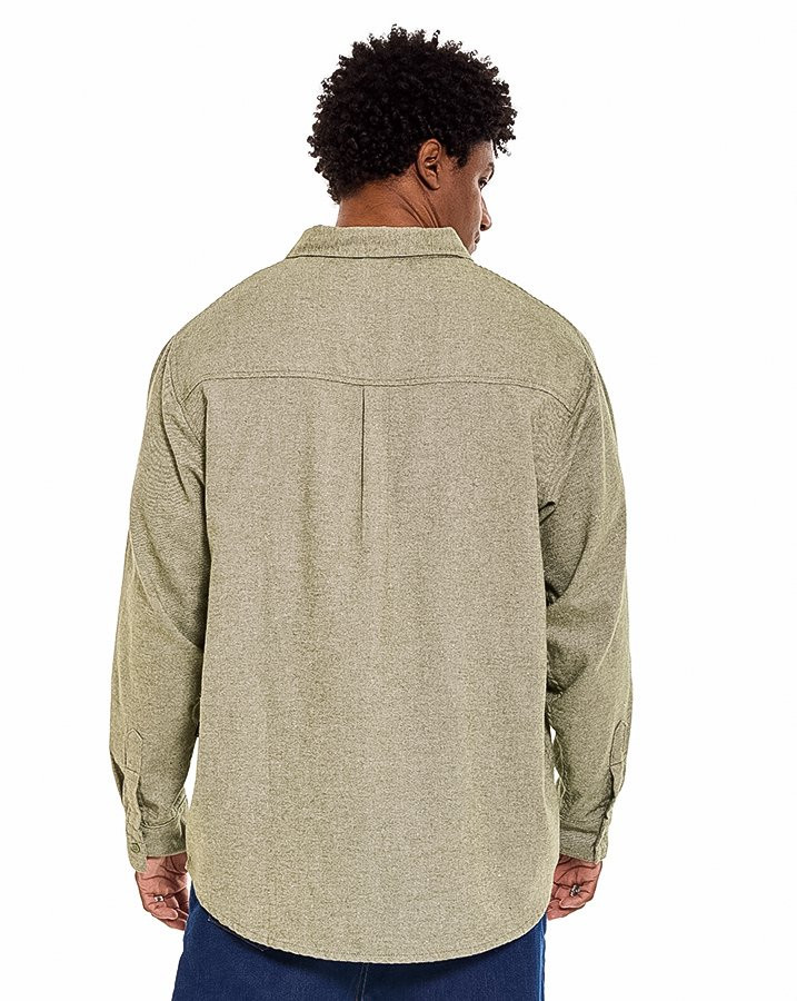 A Camisa Oversized Flanelada Verde Knulu combina estética casual com inspiração utilitária, em um modelo que privilegia o conforto e o estilo atemporal. Seu visual minimalista é marcado pelo corte amplo e estruturado, com colarinho clássico e bolsos frontais com aba, que reforçam o apelo funcional da peça.