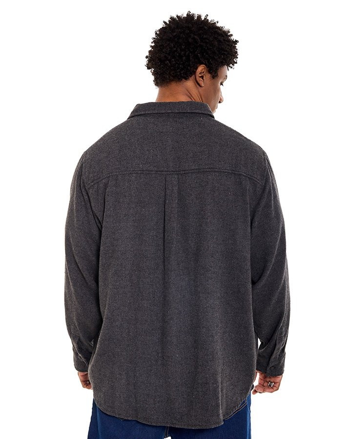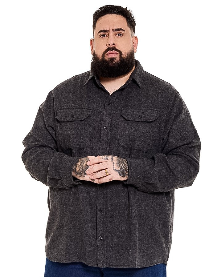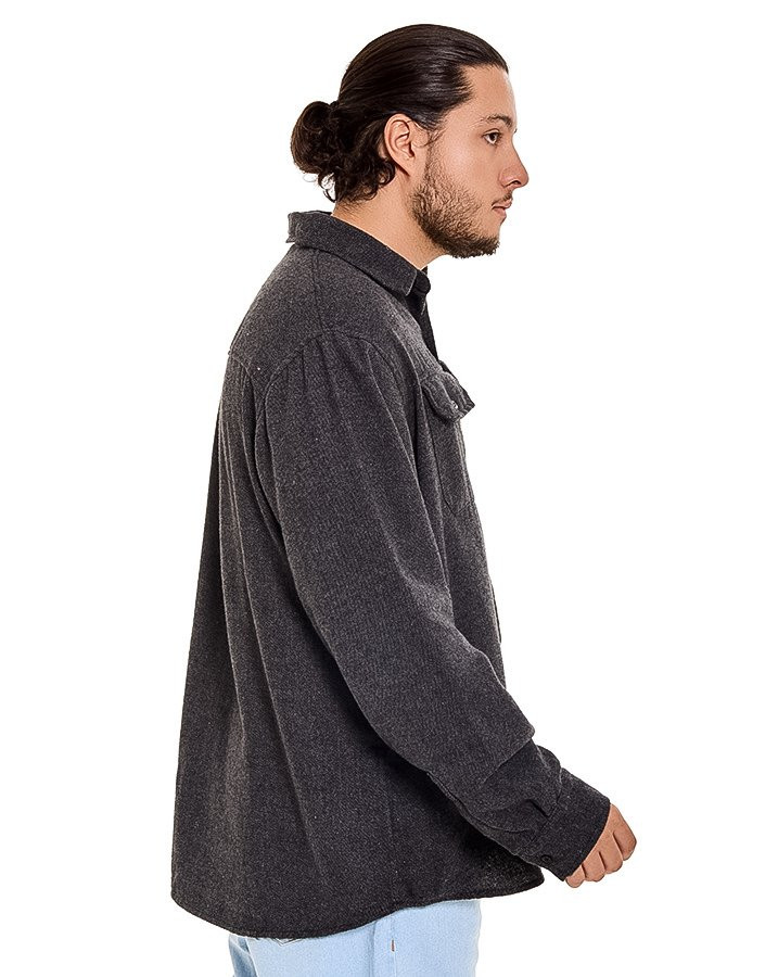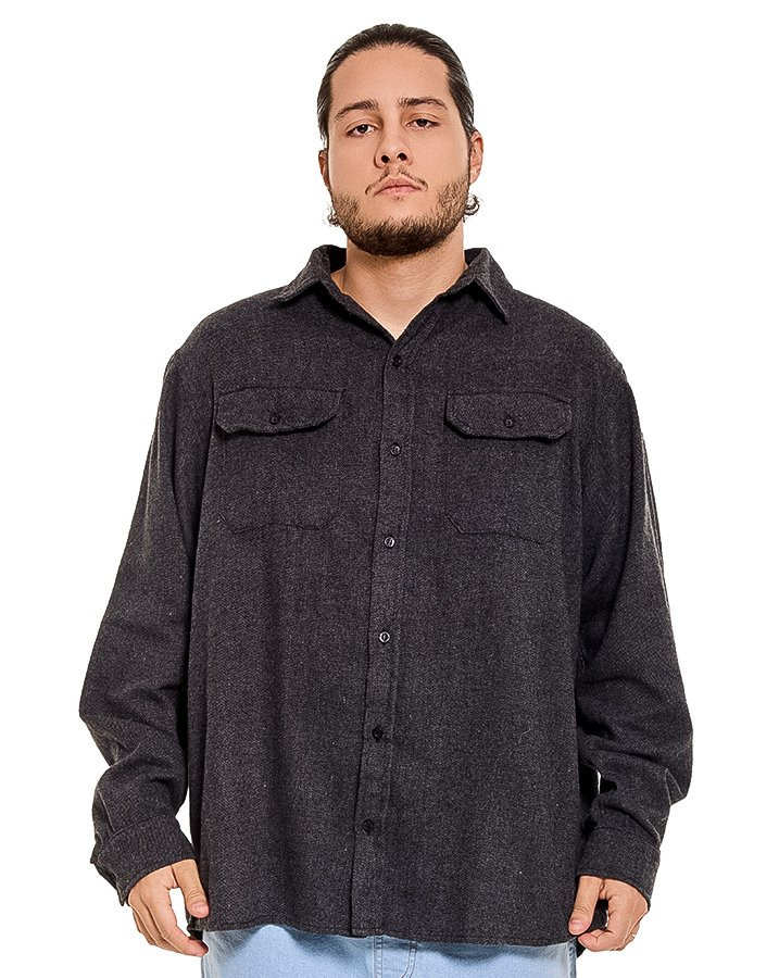 Confeccionada em tecido flanelado encorpado, oferece conforto térmico com toque macio e agradável. A textura pesada valoriza o caimento da peça e garante presença no look, enquanto o tom chumbo facilita combinações versáteis com calças jeans, cargo ou sobre camisetas básicas.