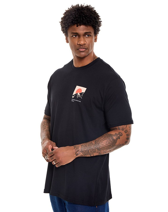 Confeccionada em algodão, proporciona toque macio e respirabilidade. O destaque está na estampa frontal e traseira com arte montanhista e elementos topográficos, que reforçam a identidade da coleção Explorer. O grafismo centralizado traz dinamismo ao visual sem perder a sobriedade.