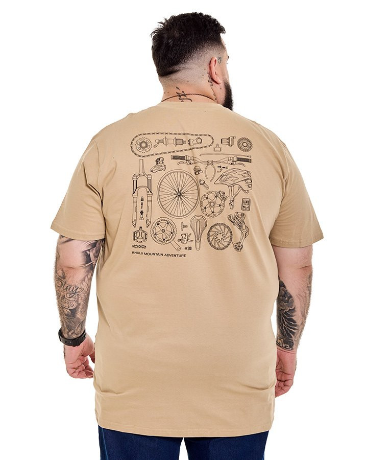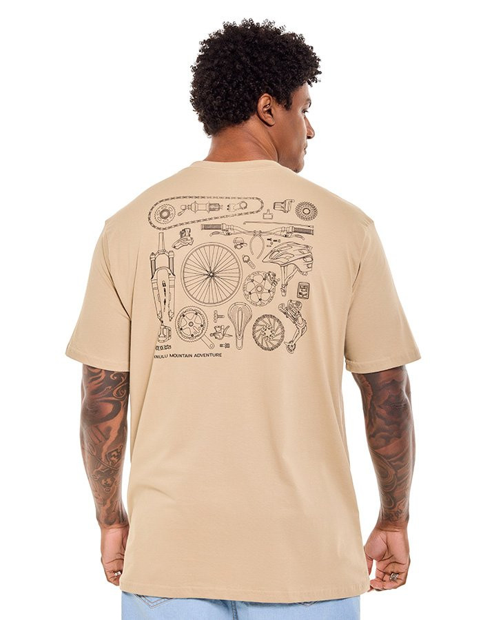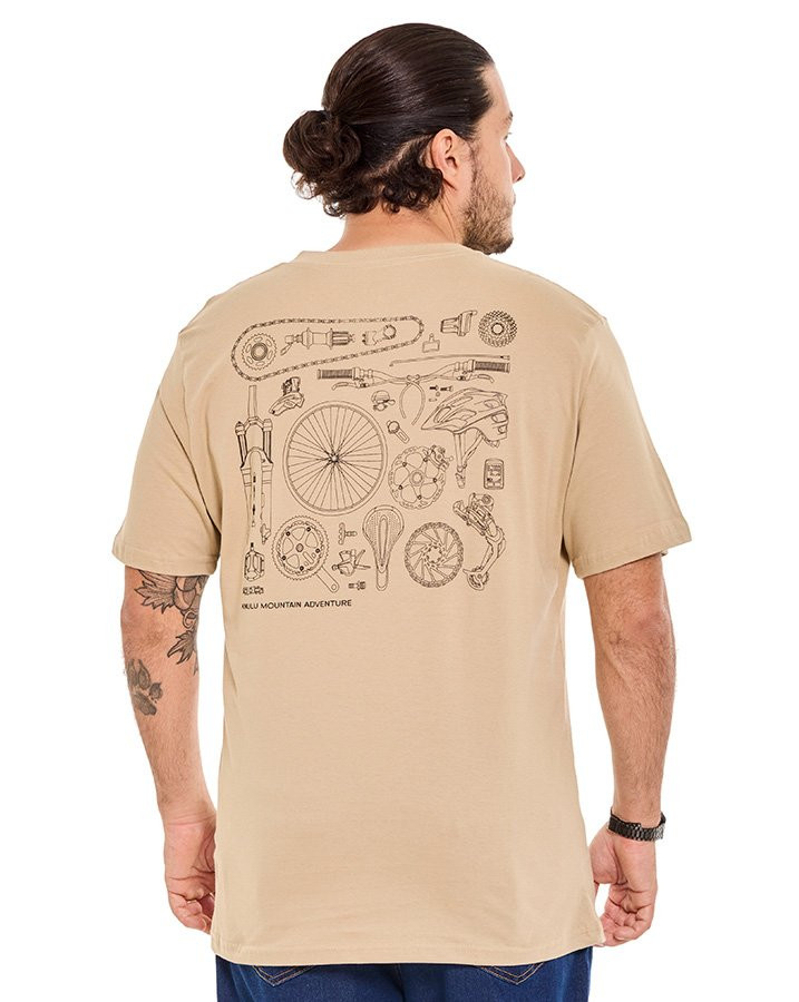 A Camiseta Classic Mountain Bike Bege Knulu traduz o espírito de aventura em uma peça urbana e cheia de atitude. Com modelagem tradicional e visual minimalista na parte frontal, ganha destaque nas costas com uma estampa técnica que ilustra componentes de uma bike montanhista.