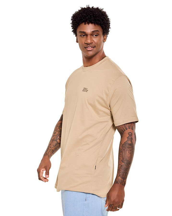 Confeccionada em algodão, oferece toque suave, conforto térmico e respirabilidade. O tom bege reforça a proposta natural da peça, conectando estilo e versatilidade. A estampa em silk screen é precisa e bem definida, trazendo identidade sem exageros.