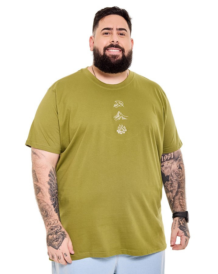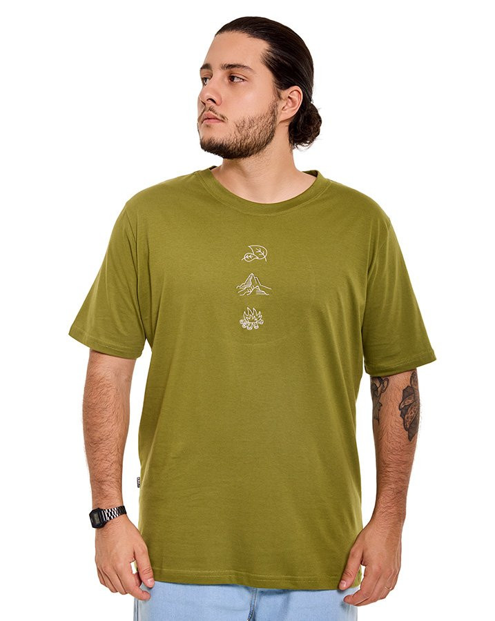 A Camiseta Classic Mountain Icons Verde Knulu combina simplicidade e propósito em um visual com identidade outdoor. A tonalidade verde reforça a conexão com a natureza, enquanto o bordado centralizado representa três ícones da vida ao ar livre: folha, montanha e fogo.