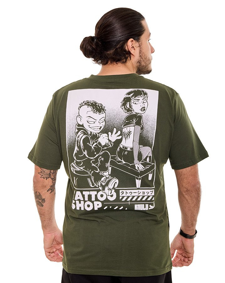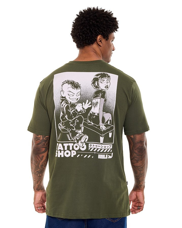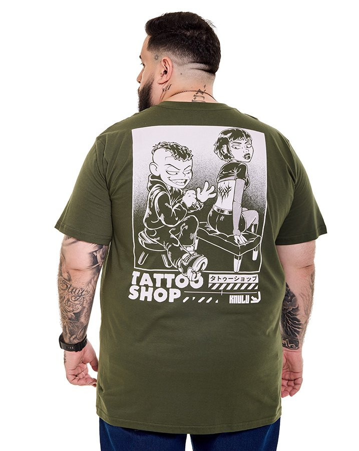 A Camiseta Classic Tattoo Shop Verde Knulu traduz atitude e originalidade com uma estampa em silk que remete ao universo das tatuagens clássicas. Com visual expressivo e arte em destaque no peito, a peça carrega identidade própria sem perder a versatilidade do dia a dia.