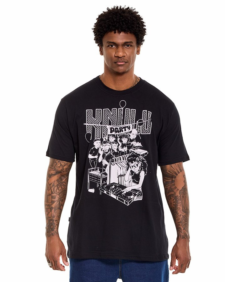 A Camiseta Classic Party Preto Knulu traz uma leitura bem-humorada e urbana com ilustração exclusiva que remete ao universo das festas e da cultura de rua. Com modelagem tradicional e caimento confortável, é uma peça que alia expressão visual e versatilidade no dia a dia.