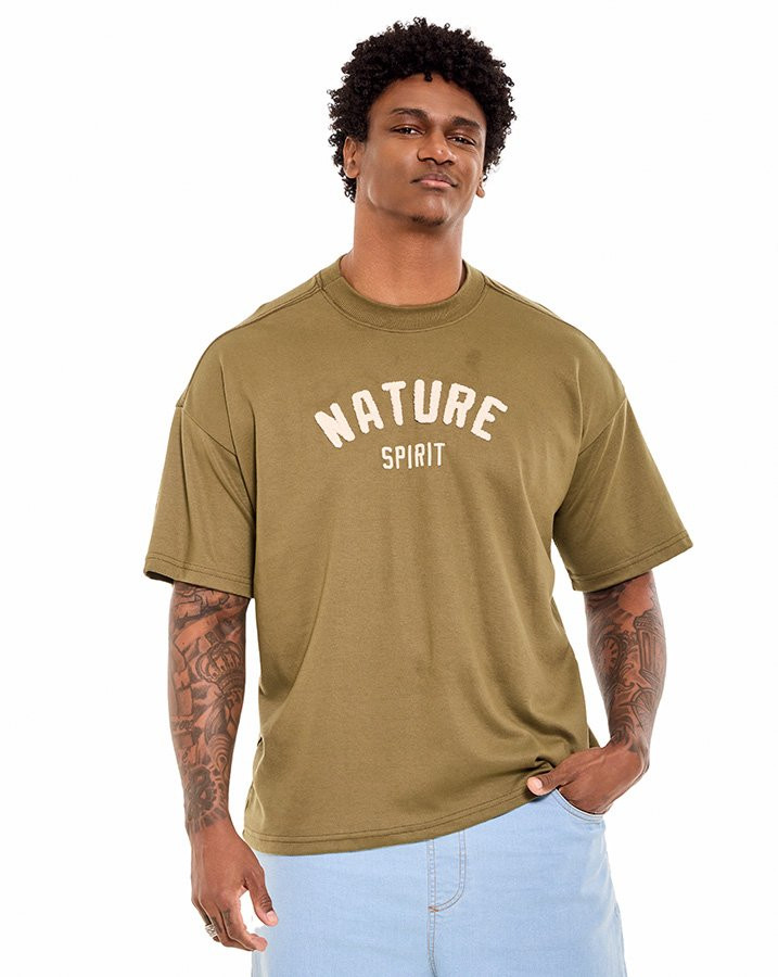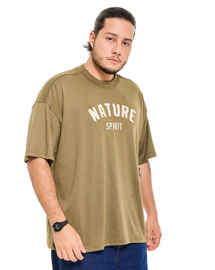 A Camiseta Oversized Nature Spirit Verde Knulu combina visual expressivo com toque macio e caimento confortável. Seu design traz modelagem ampla e gola canelada, valorizando o estilo urbano com inspiração outdoor.