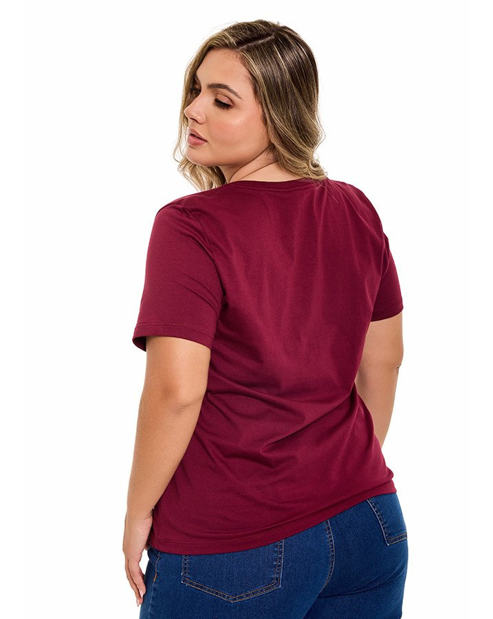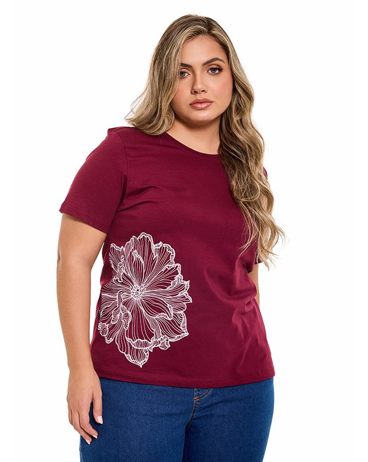 A Camiseta Feminina Flower Line Vinho Knulu traduz delicadeza sem abrir mão do conforto. Feita em malha de algodão macia, apresenta corte tradicional que se ajusta ao corpo com leveza e liberdade de movimento. O destaque fica para a estampa floral em traço contínuo posicionada na lateral, criando um efeito alongador e moderno que valoriza a silhueta.