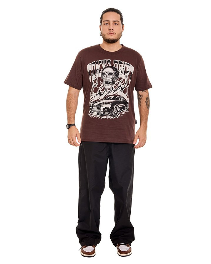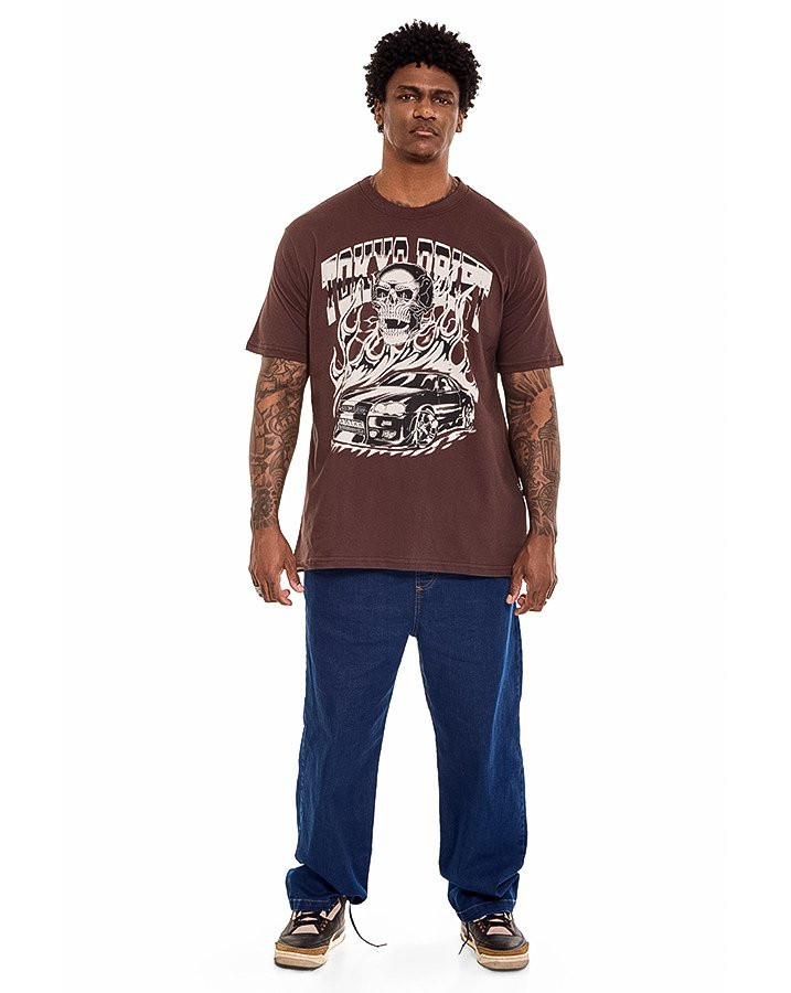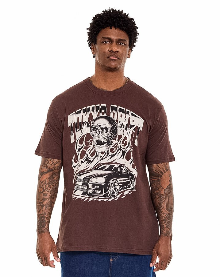 A Camiseta Classic Tokyo Drift Marrom Knulu traz uma estética urbana marcante inspirada no universo do automobilismo e da cultura de rua. Com estampa em silk screen em grande formato, o visual combina elementos gráficos intensos como o carro esportivo, chamas e caveira, criando um impacto visual autêntico e cheio de atitude.