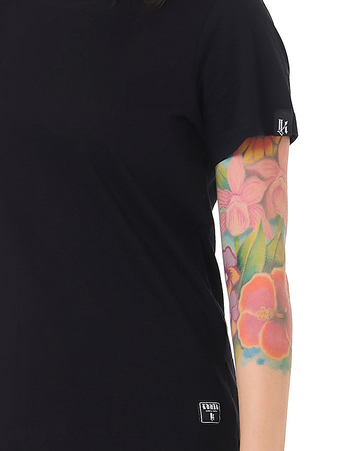 Leva uma etiqueta na manga esquerda e uma na parte inferior da camiseta