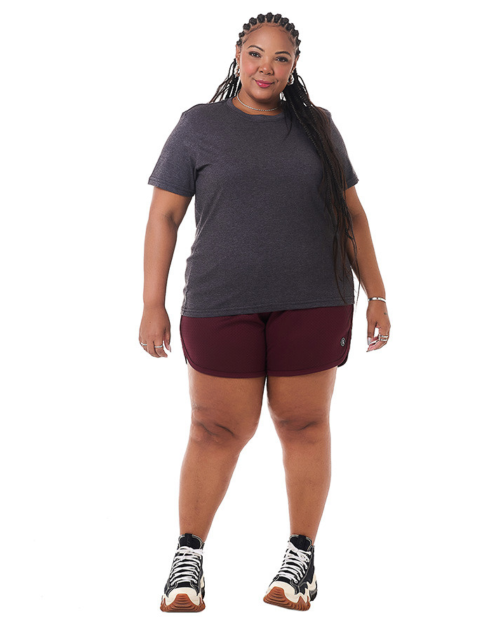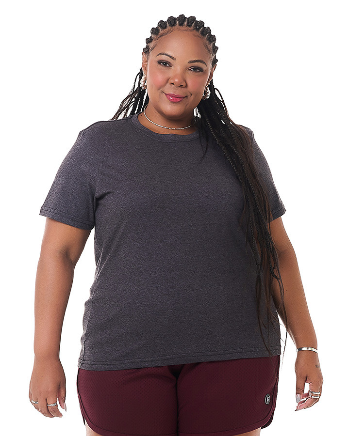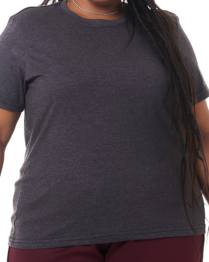 A CAMISETA BÁSICA FEMININA CINZA CHUMBO é aquela peça básica que não pode faltar no armário! É uma peça versátil que compõe qualquer look, seja no casual até para uma reunião no trabalho. Confeccionada em malha 30.1 penteada 100% algodão que proporciona conforto e excelente modelagem ao corpo.