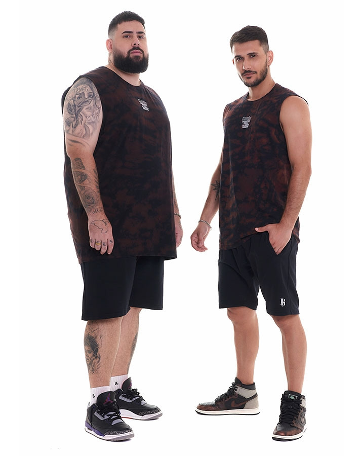 A Regata Masculina Machão Tie-Dye Storm Vermelho Knulu foi produzida em malha premium, sendo pensada desde o início do processo dos fios de alta qualidade, modelagem clássica, gola careca e mangas curtas.