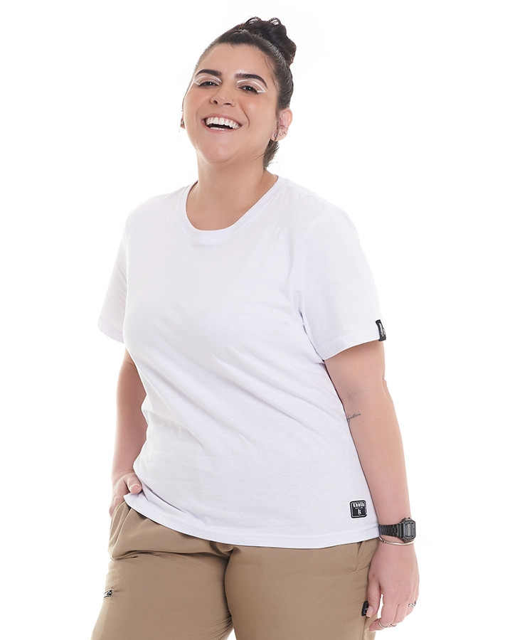 Feita em malha de alta qualidade tem toque macio e caimento leve, leva uma etiqueta na manga esquerda e uma na parte inferior da camiseta.