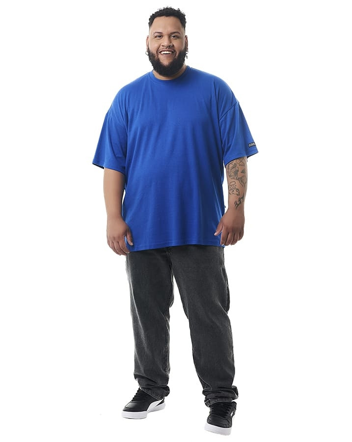 A Camiseta Oversized Soft Azul Royal Knulu, possui a modelagem ampla, base reta e alongada, com o ombro também alongado, iniciando a manga já no braço, uma característica do "Oversized". O grande diferencial da Oversized Knulu é que em uma das etapas da nossa produção deste modelo, a peça passa por um processo de lavagem, assim garantindo que não terá nenhum percentual de encolhimento, afinal, é uma oversized!