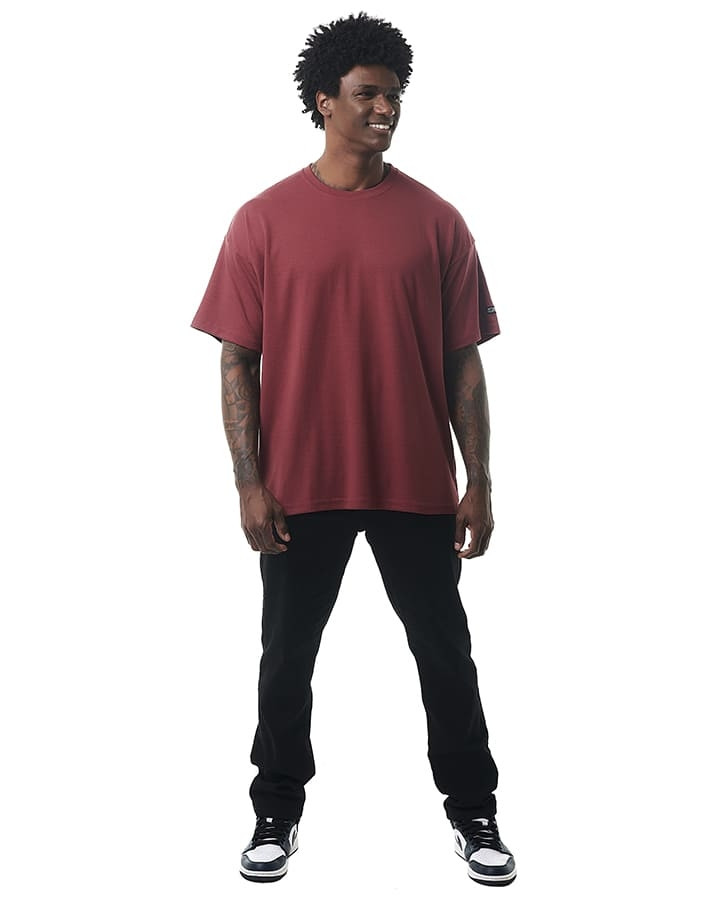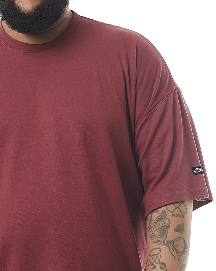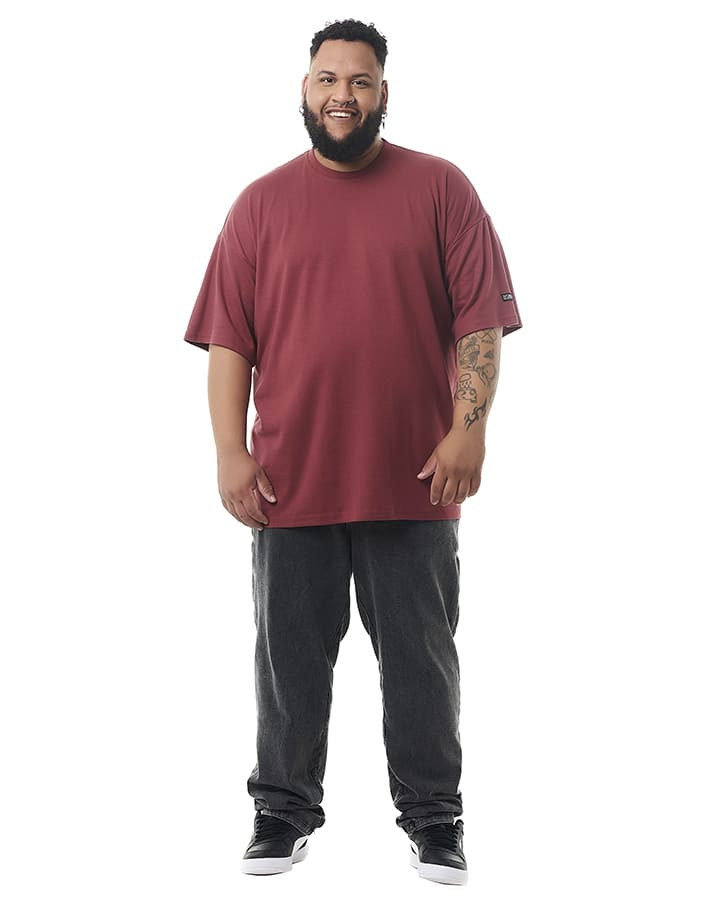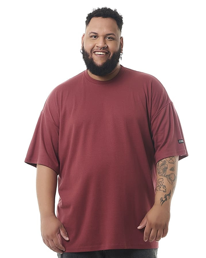 A Camiseta Oversized Soft Vinho Knulu, possui a modelagem ampla, base reta e alongada, com o ombro também alongado, iniciando a manga já no braço, uma característica do "Oversized". O grande diferencial da Oversized Knulu é que em uma das etapas da nossa produção deste modelo, a peça passa por um processo de lavagem, assim garantindo que não terá nenhum percentual de encolhimento, afinal, é uma oversized!