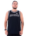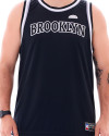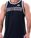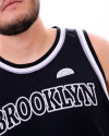 A estampa frontal "BROOKLYN", em fonte atlética com preenchimento branco e contorno preto, dá personalidade à peça, enquanto o pequeno logo de sol acima da estampa adiciona um toque exclusivo. O patch decorativo na parte inferior esquerda, com o logo "KNULU" e um emblema de basquete, reforça o DNA esportivo da regata.