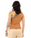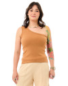 Com modelagem assimétrica, esta regata destaca-se pelo design de ombro único, deixando um lado completamente exposto enquanto o outro conta com uma alça larga que se ajusta confortavelmente. O tecido canelado adiciona uma textura sofisticada, conferindo um visual moderno e elegante à peça. A parte de trás mantém o estilo assimétrico, com acabamento uniforme que realça a proposta contemporânea.