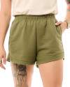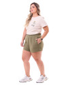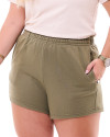 A parte de trás mantém o mesmo estilo minimalista, com acabamento uniforme e sem bolsos, destacando a fluidez e a simplicidade da peça. O short é perfeito para compor looks casuais e frescos, podendo ser combinado com camisetas, regatas ou blusas mais ajustadas. Complete o visual com tênis ou sandálias para criar looks descontraídos e modernos.