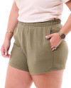 Com modelagem solta e corte levemente arredondado nas laterais, o short apresenta um design minimalista e moderno. O cós elástico alto garante um ajuste prático e confortável, adaptando-se perfeitamente ao corpo. Os bolsos laterais adicionam funcionalidade, permitindo que você carregue pequenos itens essenciais com facilidade. O tecido liso confere um visual clean e versátil, ideal para diversas combinações.