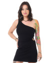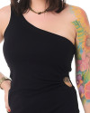 Desperte seu lado glamouroso com o Vestido Glam Recorte Preto Knulu. Este vestido curto, confeccionado em malha canelada é 97% algodão 03% elastano, é uma expressão de elegância e estilo. Com um design de um ombro só e ajustado ao corpo, ele oferece um visual sofisticado e sedutor.